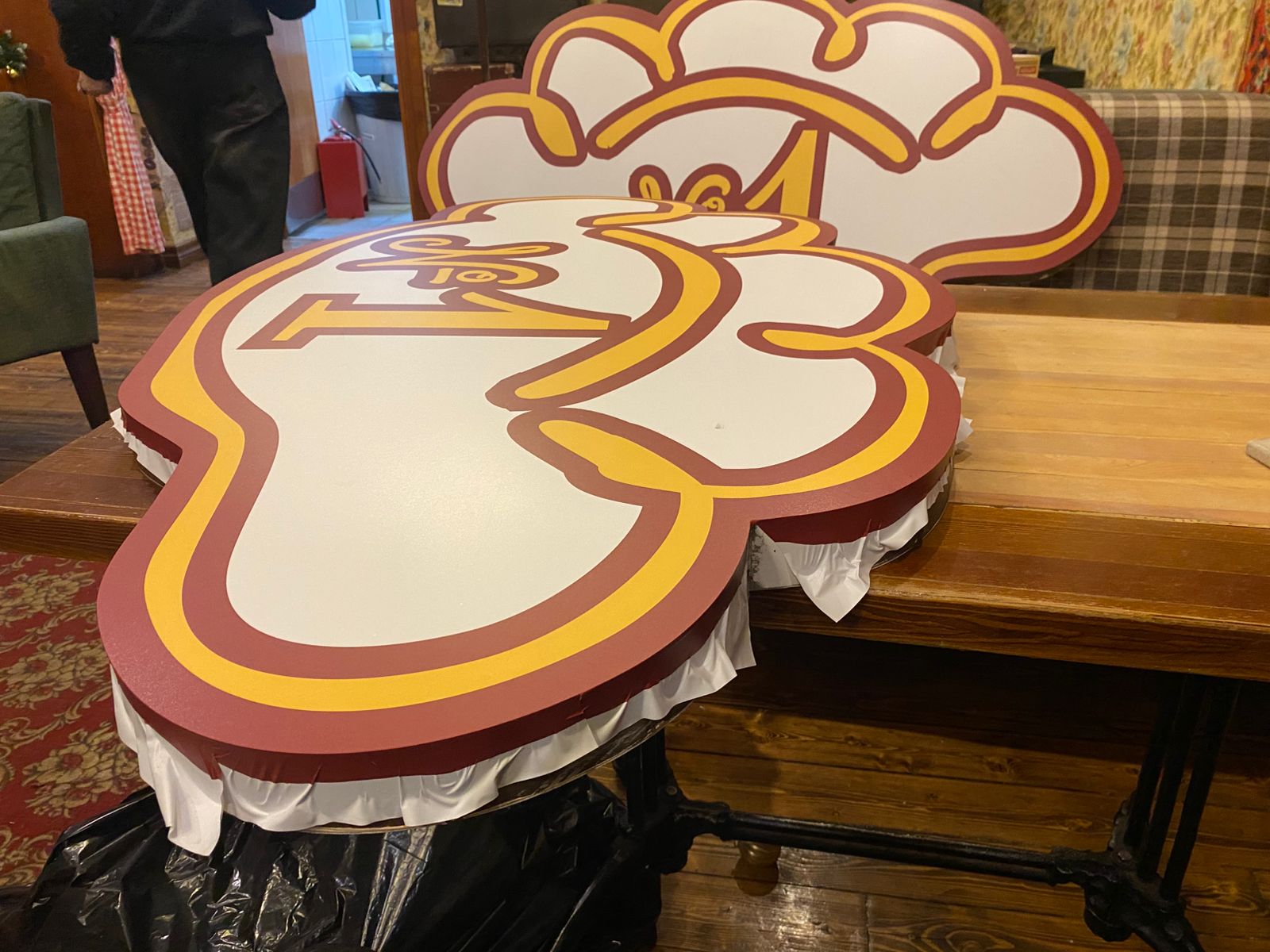Производственные затраты. Резка и формовка элементов вывески будет стоит около 3000 рублей, а сборка и монтаж подсветки — 4000 рублей.