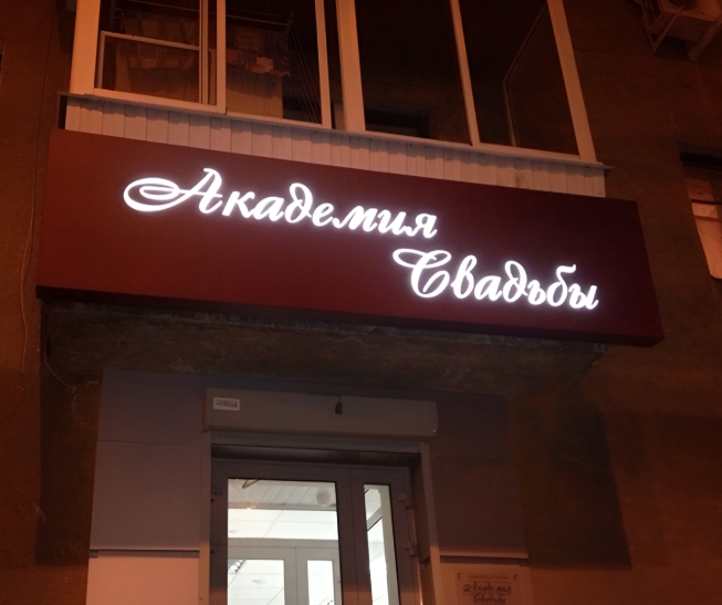 Фрезерованный световой короб — это вывеска, в которой надпись вырезают в лицевой части и подсвечивают светодиодами, установленными внутри корпуса на заднике. Свет, идущий от диодов, рассеивается акриловым оргстеклом, установленным сразу за лицевой поверхностью конструкции.