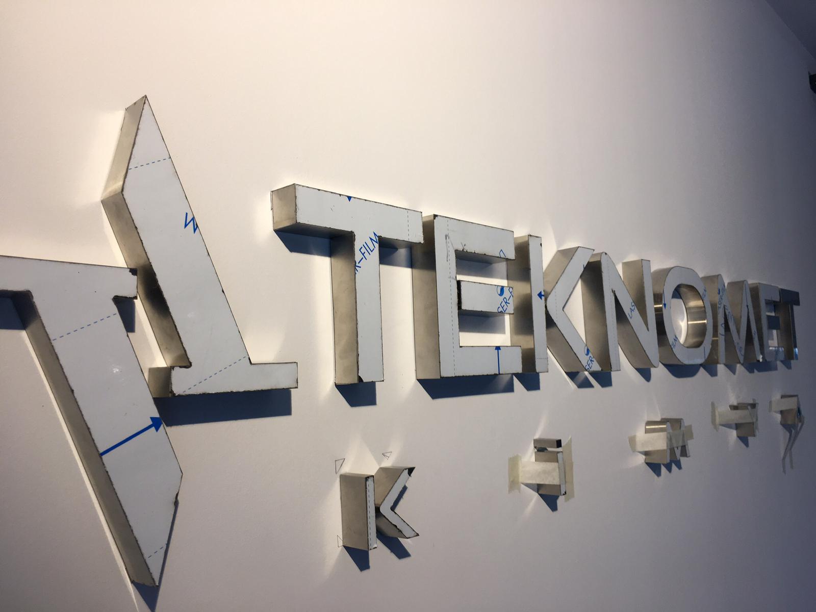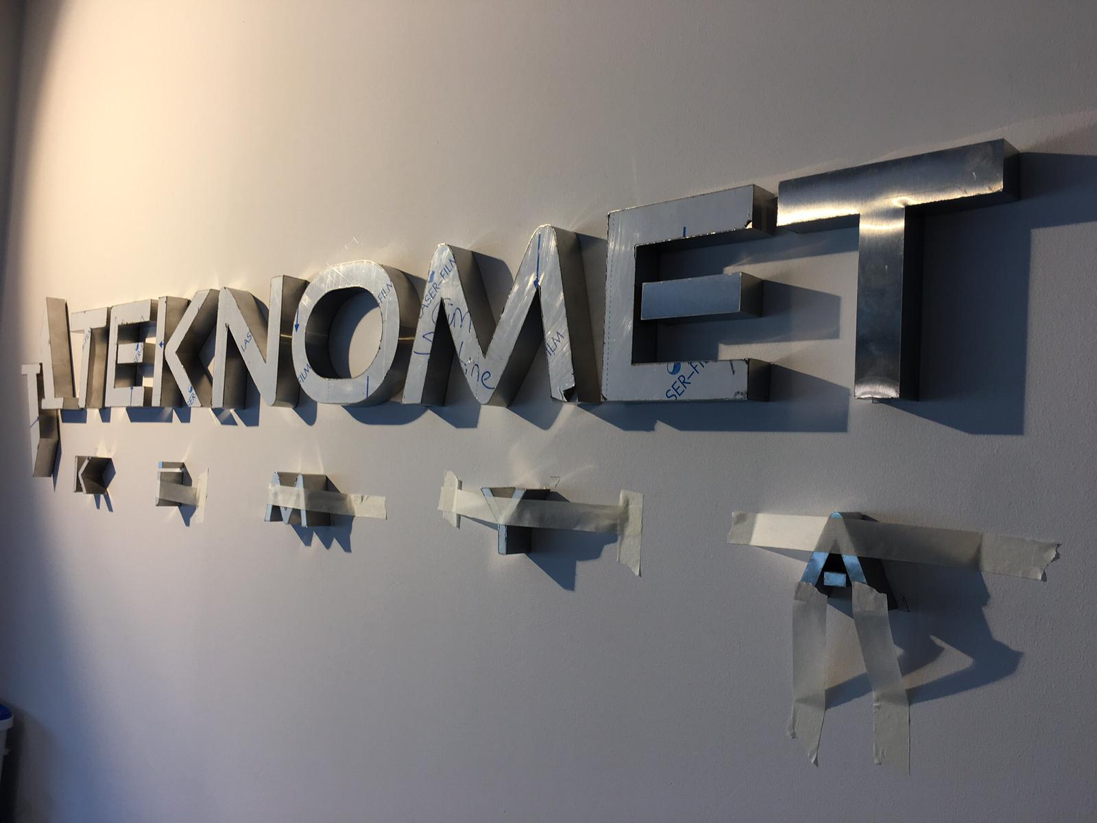 На встрече с клиентом уточнили размеры места установки (на стене), бюджет и требования к типу и дизайну объемных букв из алюминия. В специализированной программе подготовили дизайн-проект вывески, чтобы разработать точный чертеж с учетом размеров, формы букв и элементов подсветки. На следующем этапе изготовили основу вывески. Алюминий вырезается с помощью лазера, что позволяет добиться высокой точности. Для букв и других элементов используется листовой алюминий толщиной 2-3 мм.