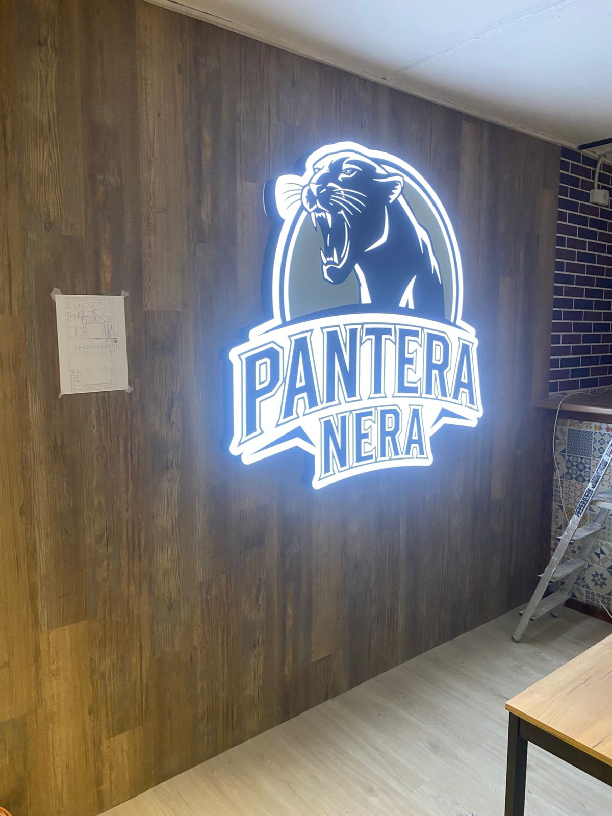 Материалы. Логотип на стену изготавливается из ПВХ пластика (300 до 2000 руб/м²), нержавеющей стали (4500 до 5000 руб/м²) или алюминия (2000 до 2300 руб/м²), акрилового стекла PLEXIGLAS (3000-5000 руб/м²). Для подсветки нужны светодиоды со стандартом защиты IP65-67 (500–3000 руб/м) и блок питания (500-1500 руб/шт). Стоимость резки и формовки элементов вывески составит около 3000 рублей, а сборка и монтаж подсветки — около 4000 рублей.