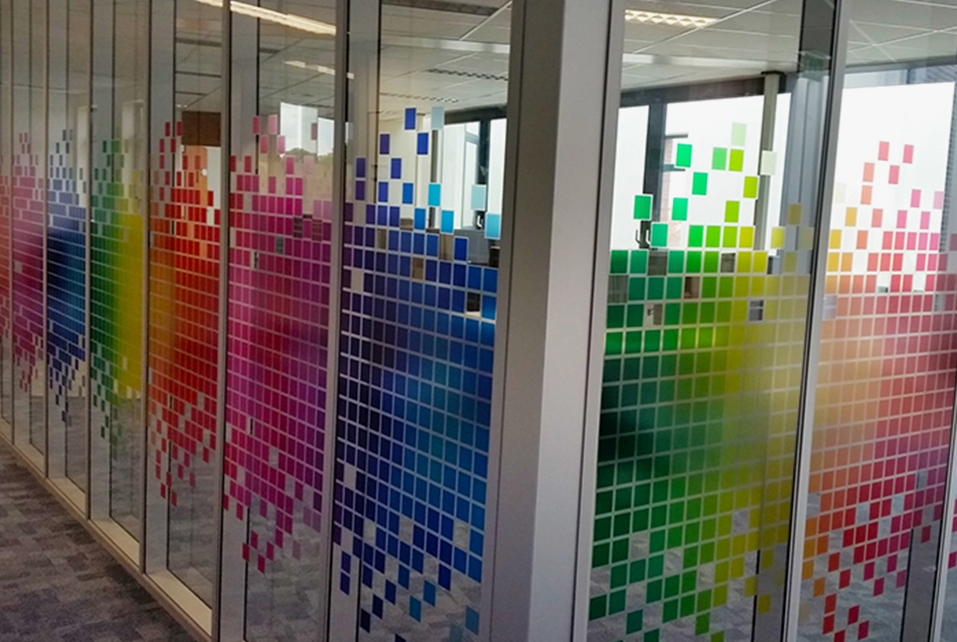 Крепится к стеклу за счет статического электричества. Не оставляет следов, подходит для многократного использования. Идеальна для витрин и офисных перегородок.